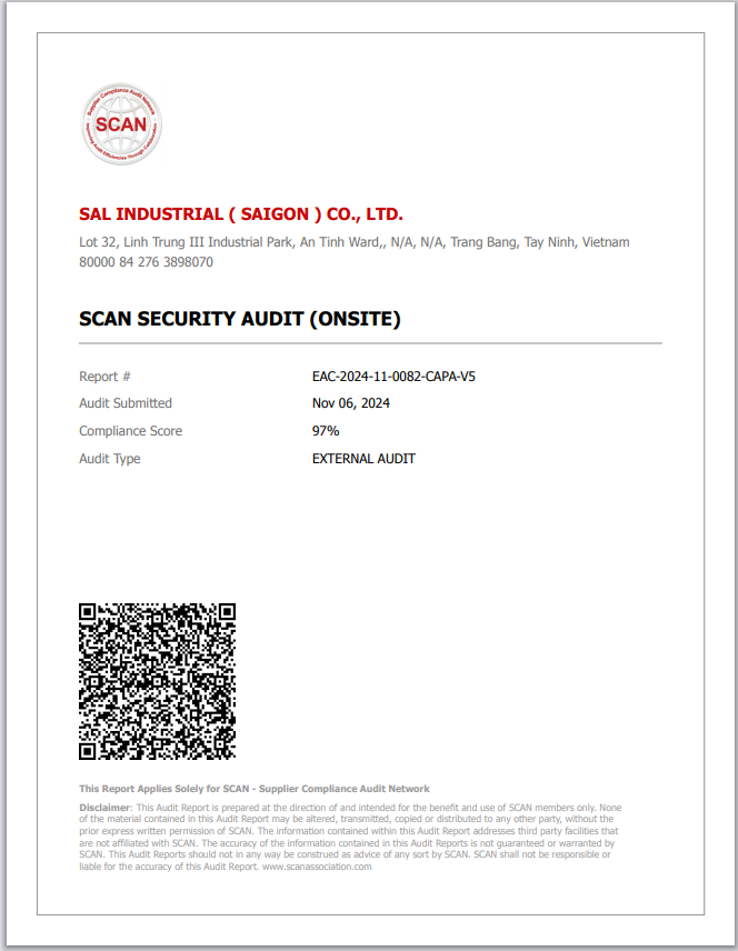 With close attention to quality control, constant care to human rights, Counter Terrorism safety and nature environment, our factory passed multiple factory audits and obtained relevant certificates as below: